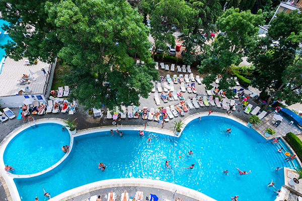Открит басейн и бар; закрит басейн; детска площадка; фитнес зала; сауна;