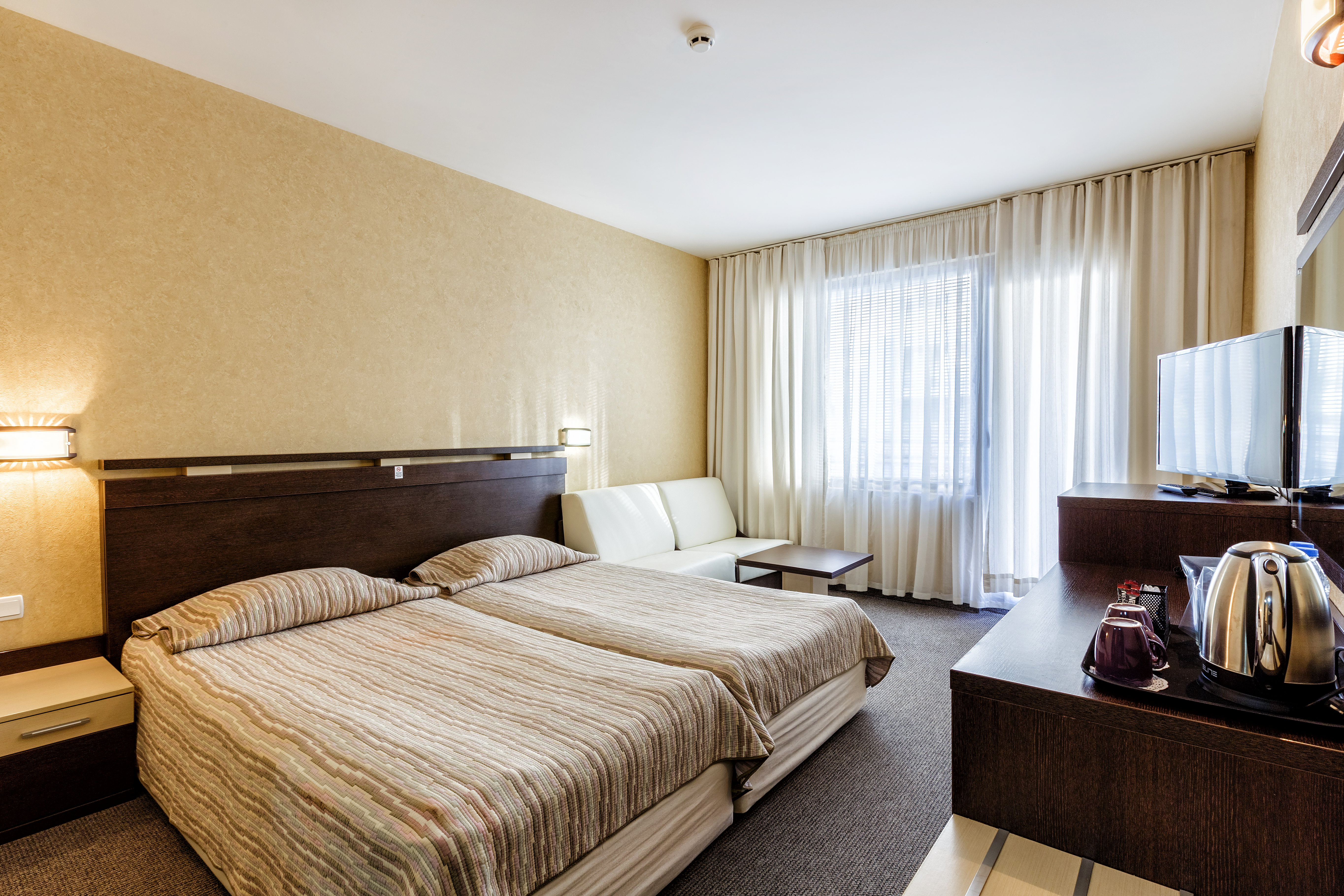 В хотела: 24-часова рецепция, асансьори, ресторант, снек-бар и коктейл бар, аквапарк с два открити басейна с пързалки и водопади, хидромасажни душове и други удобства на аквапарка, детски басейн, СПА и уелнес център, сауна, турска/парна баня и масажи. Гостите имат достъп до фитнес зала с парна баня, Wi-Fi, частен паркинг (платен), обмяна на валута, почещение за съхранение на багаж и настолни игри;