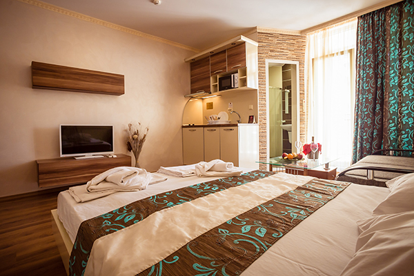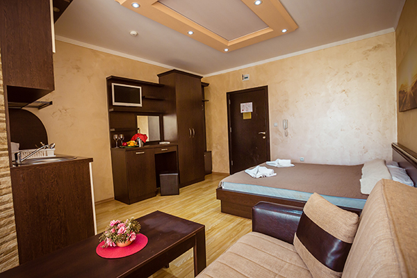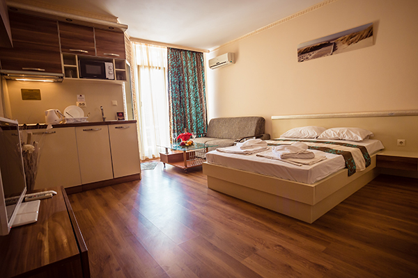 АПАРТАМЕНТ: спалня с двойно легло + хол с разтегателен диван или 2 единични легла 2+2 максимално 4 възрастни