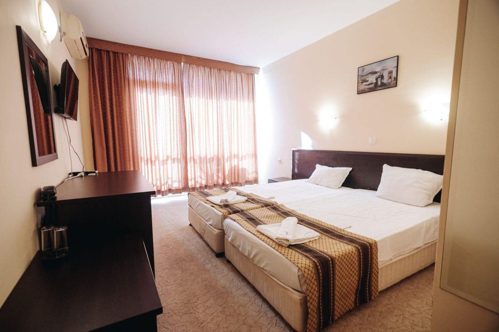 стаите: климатик, телевизор, хладилник тип минибар, баня, балкон. WiFi