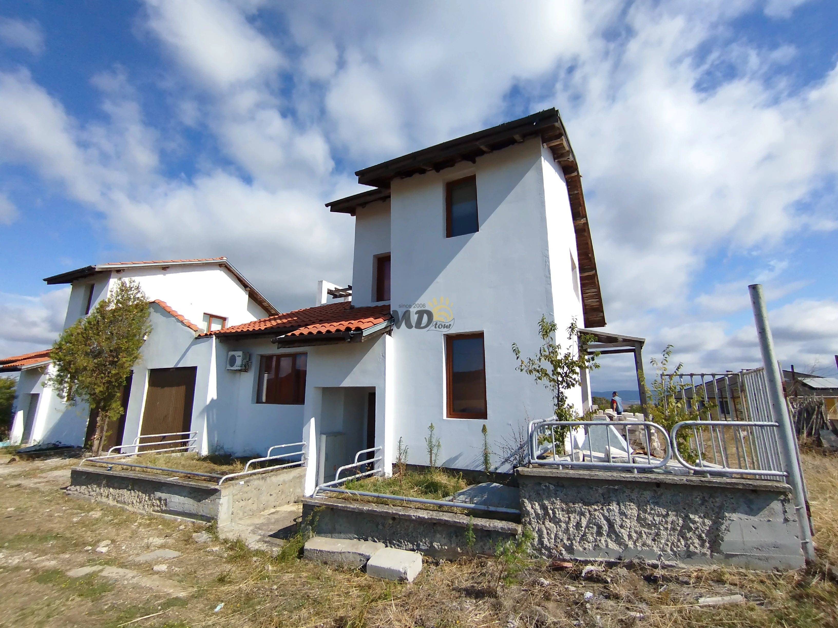 Нова самостоятелна къща на 2 етажа с гараж. Намира се в село Александрово което е само на 12км от Слънчев бряг и плажа. Отличен имот за целогодишно или сезонно ползване. Къщата е въведена в експлоатация и има самостоятелни партиди за ток и вода. Продава се с обзавеждането което се вижда.