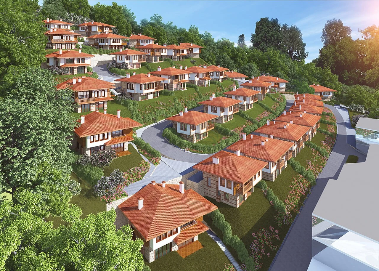 Всички използвани материали са природосъобразни, екосертифицирани от висок клас, като обликът на комплекса е в унисон със заобикалящата го горска среда, което в съчетание с близостта на морето, планината и престижната локация напълно оправдава инвестицията в закупуване на къща в комплекса.
